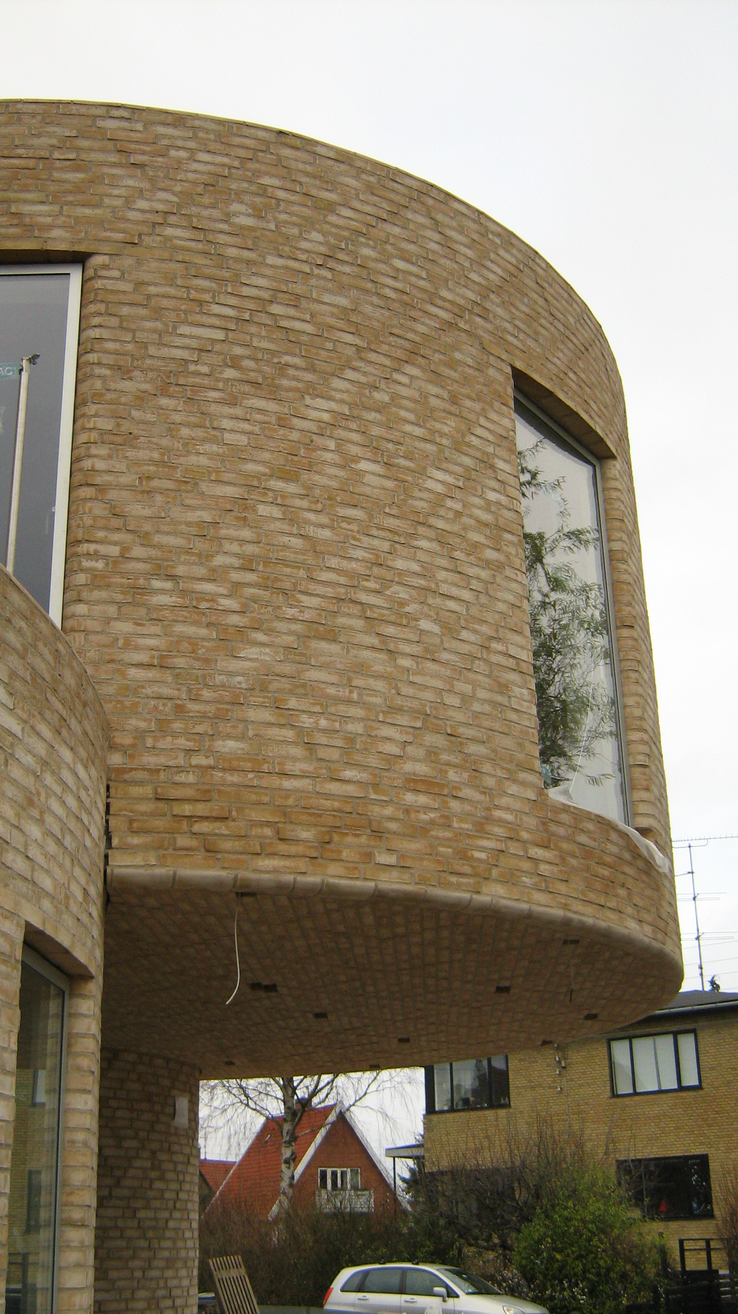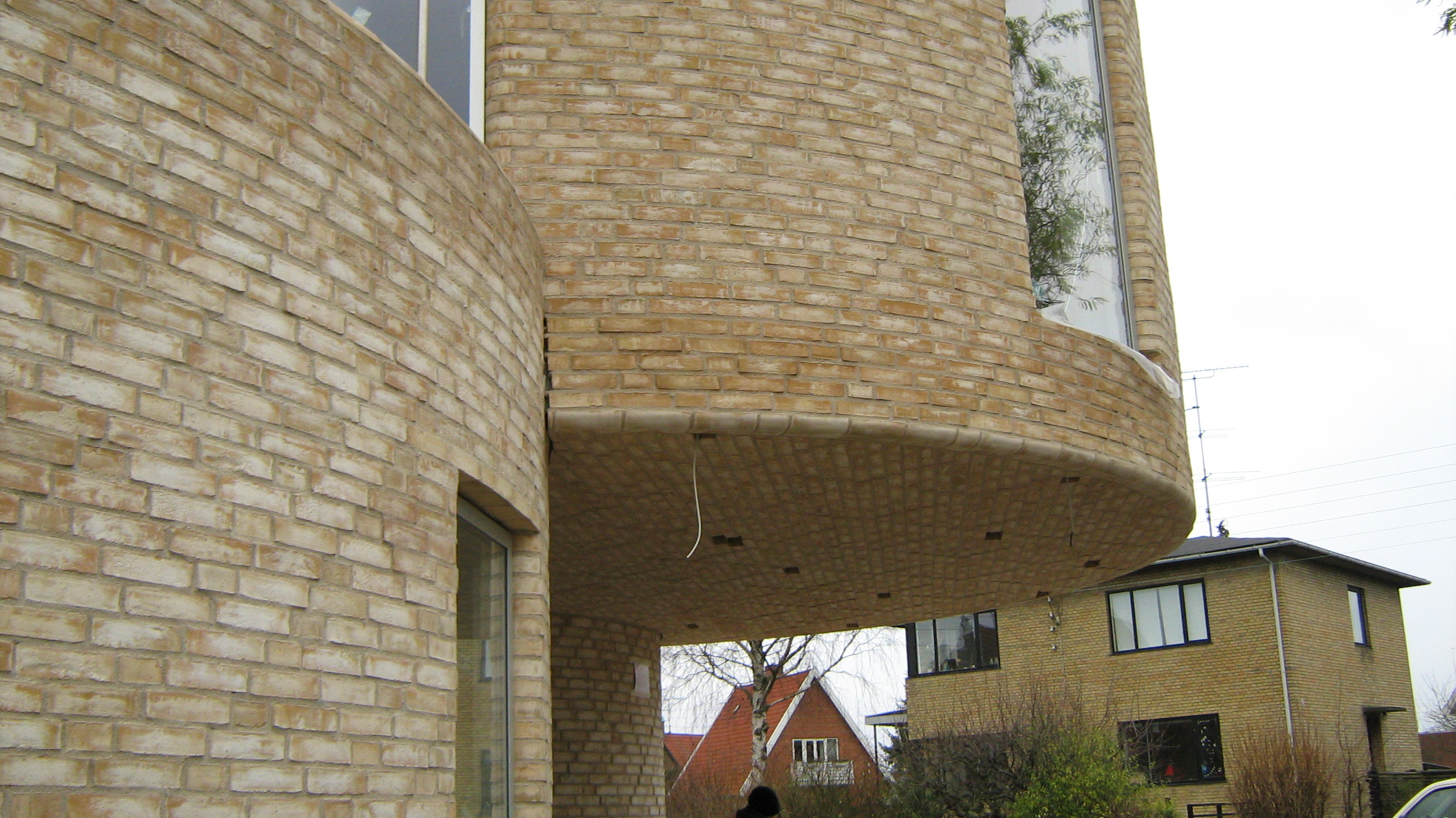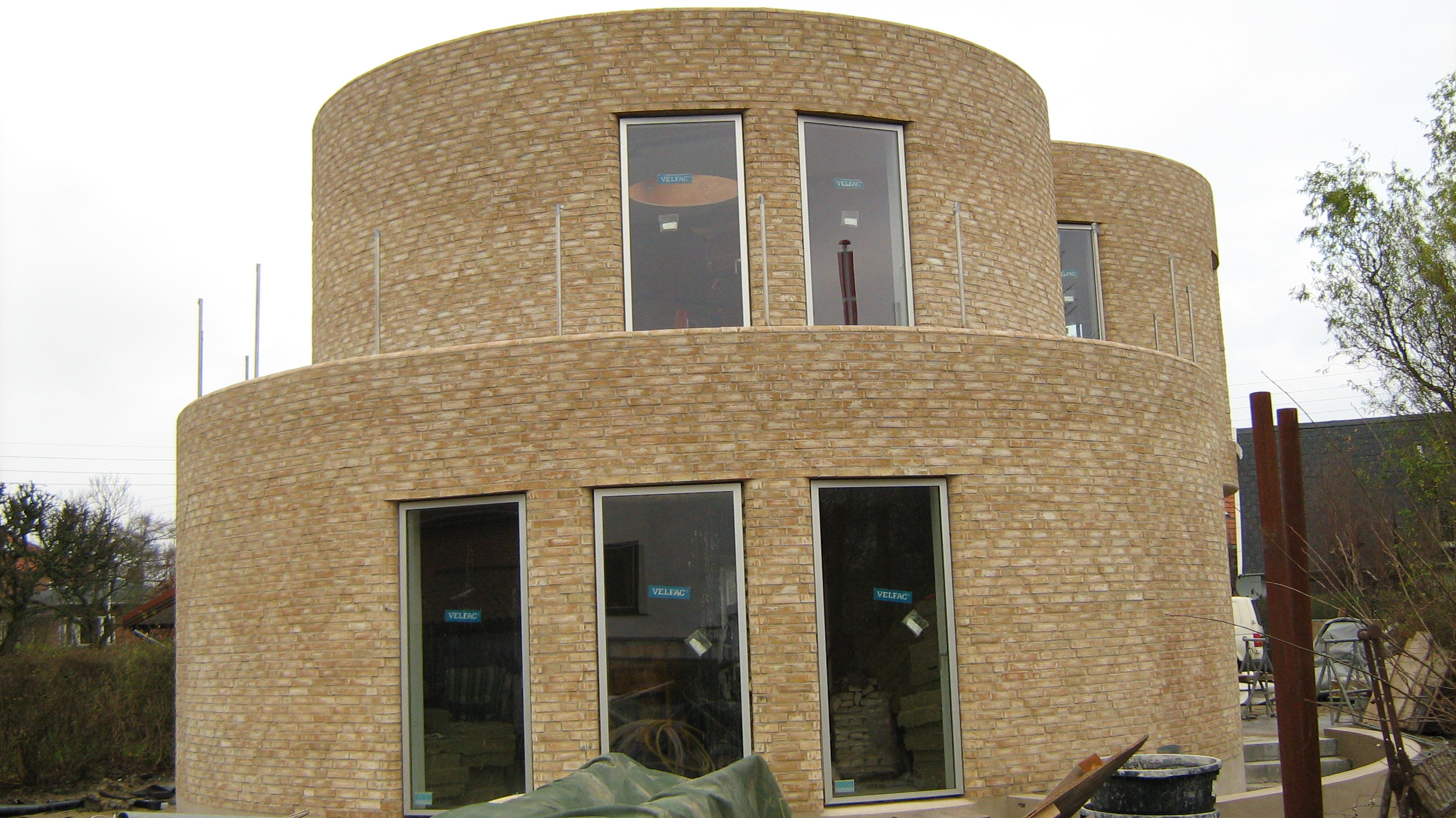 En ny villa på Amager skulle opføres i fire runde moduler, muret op med gule sten.